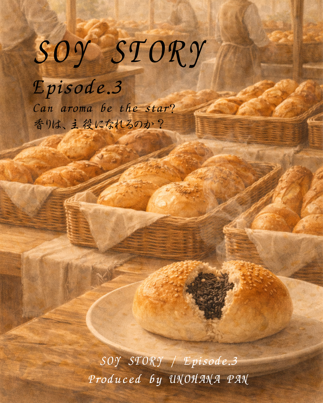 口に入れる前から、伝わるものがある。深く、静かに立ちのぼる黒ゴマの香り。上流階級の食卓に置かれた、黒ゴマつぶあんの大豆パン。それは、「味は舌で感じるもの」という常識を、そっと越えてくる。香りが導く、もうひとつの美味しさ。静かな余韻が、残り続ける。