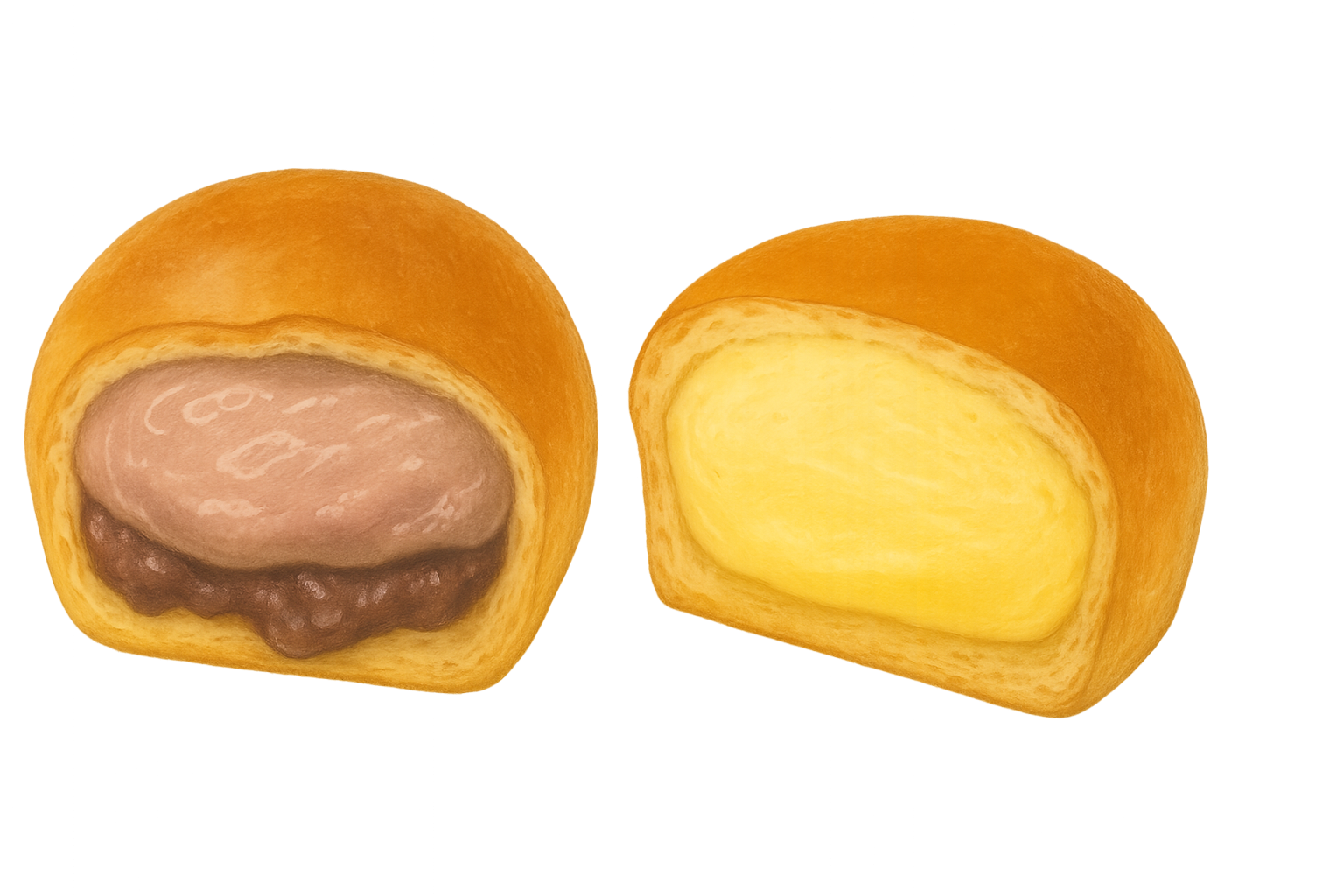 - 外側:大豆パン — たんぱく質豊富でしっとり。素材の甘さを引き立てる香ばしい生地。