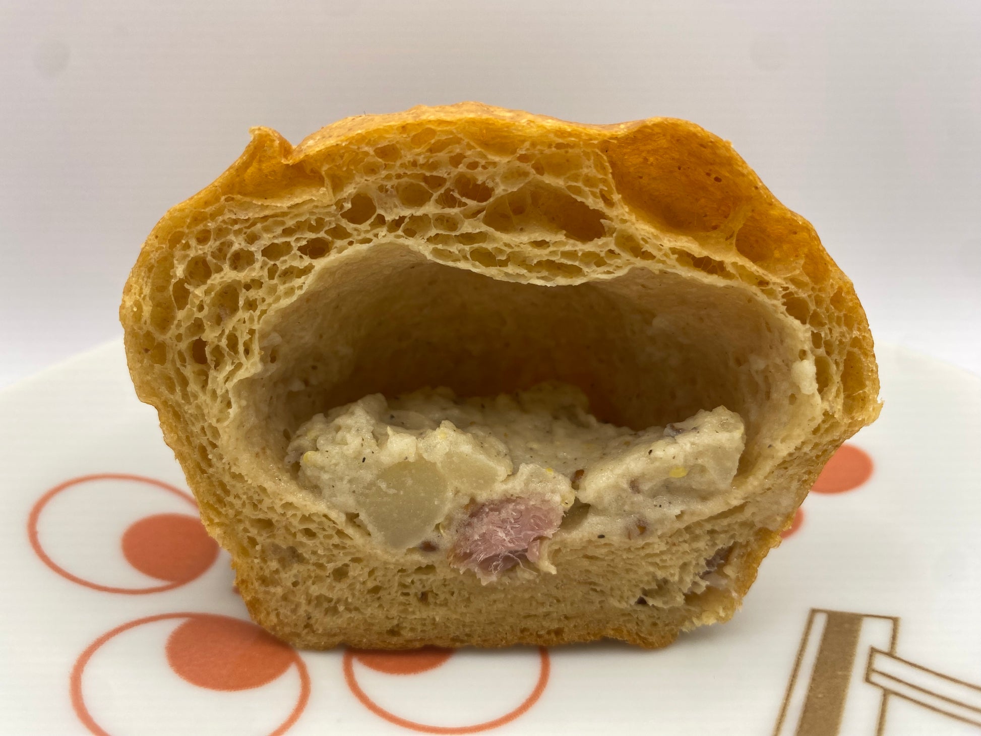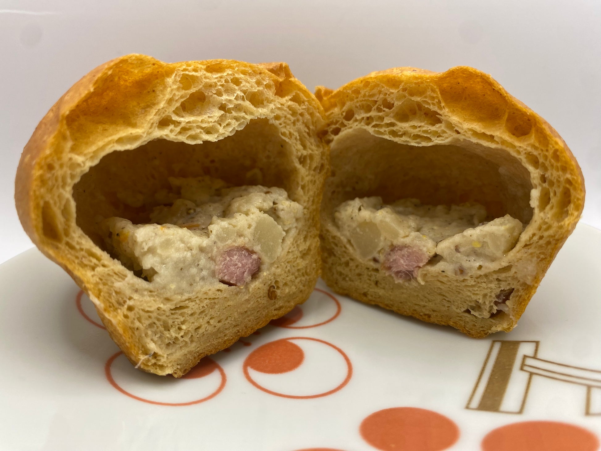 ほくほくのポテトと香り高いベーコンを、塩・コショーでシンプルに味付けしたジャーマンポテトを大豆パンで包みました。 卯の花パンのラインナップでは希少な“スパイシー系”ですが、刺激が強すぎず、香りと旨みが立ち上がるバランス設計。 ポテトのやさしい甘みとベーコンのコク、黒こしょうのキレが合わさり、食べ進めるほどに食欲が整います。 しっとりした大豆パン生地が具材の味を受け止め、温めることで香りとほくほく感が引き立ち、食べ頃の温度で完成。 ランチにも軽い夕食にもフィットする、あったか食事パンの新定番です。